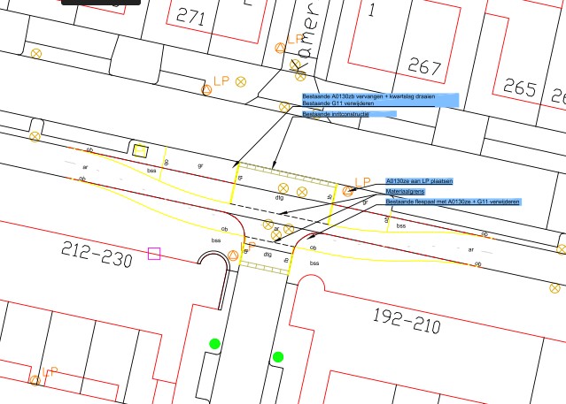Het is een ergernis bij de fietsers, want ineens staat er een auto stil op het fietspad en dat geeft soms hachelijke verkeerssituaties op dat punt. Vaak moet er dan door de fietser(s) hard in de remmen worden geknepen. Om de blokkade op het fietspad te verminderen heeft de gemeente bedacht om het fietspad dichter naar de woonblokken toe te verleggen. Zo ontstaat er een groter opstelvak voor de voertuigen en minder hinder voor de fietsers.